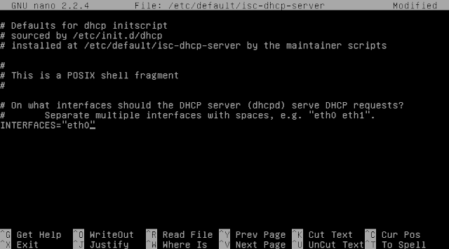 nano /etc/default/isc-dhcp-server ,
